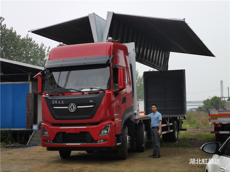 湖北虹昌达专用汽车有限公司生产的翼开启厢式运输车采用国内XUAN进的电液一体化举升装置,20年的改装飞翼车经验,技术成熟,品质过硬,价格合理.买东风天龙国六飞翼车,高顶双卧,前四后四,此车为GAO配飞翼车型,舒适度好。买这款车没错。