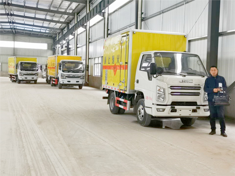 爆破器材运输车又名炸药运输车,雷馆运输车,防爆车,民爆车,烟花爆竹运输车。它是根据国家有关部委对爆破器材运输的规范和用户的要求而研制生产,产品符合国防科工委关于《爆破器材运输车安全技术条件》的要求。具有厢体强度高、防火阻燃、防雨、防止静电火花、烟火报警和防盗报警等主要功能。