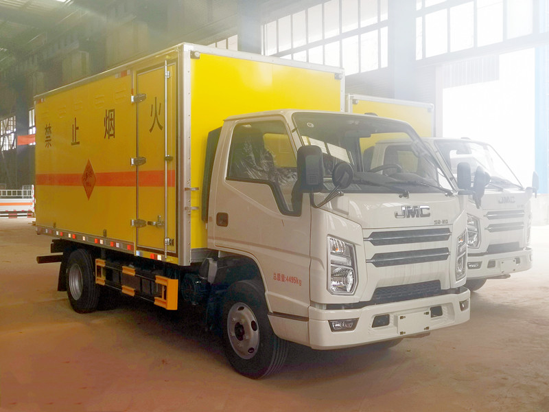 爆破器材运输车又名炸药运输车,雷馆运输车,防爆车,民爆车,烟花爆竹运输车。它是根据国家有关部委对爆破器材运输的规范和用户的要求而研制生产,产品符合国防科工委关于《爆破器材运输车安全技术条件》的要求。具有厢体强度高、防火阻燃、防雨、防止静电火花、烟火报警和防盗报警等主要功能。